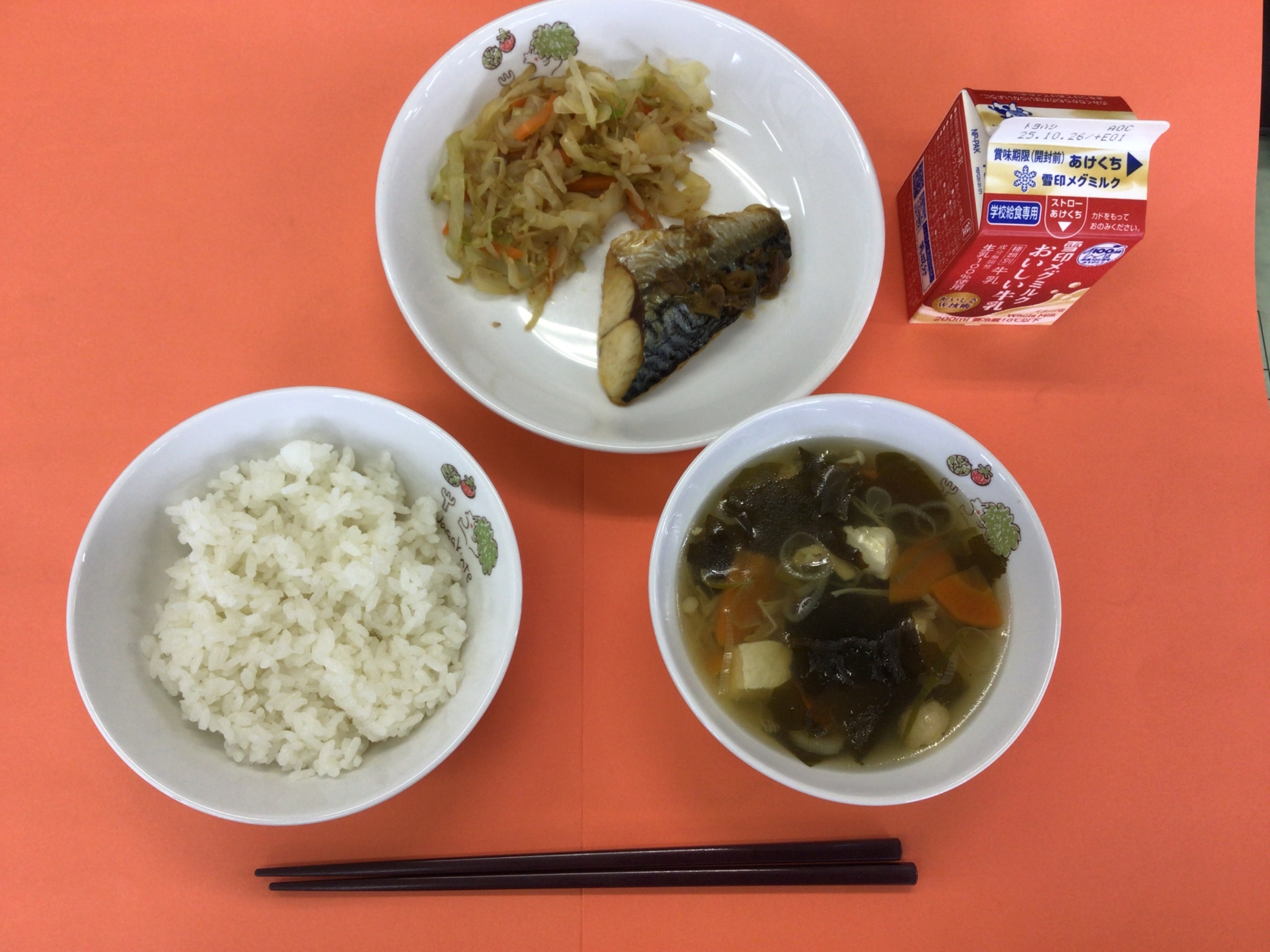今日の給食はご飯、牛乳、さばの南蛮漬け、ごまあえ、わかめ汁でした。