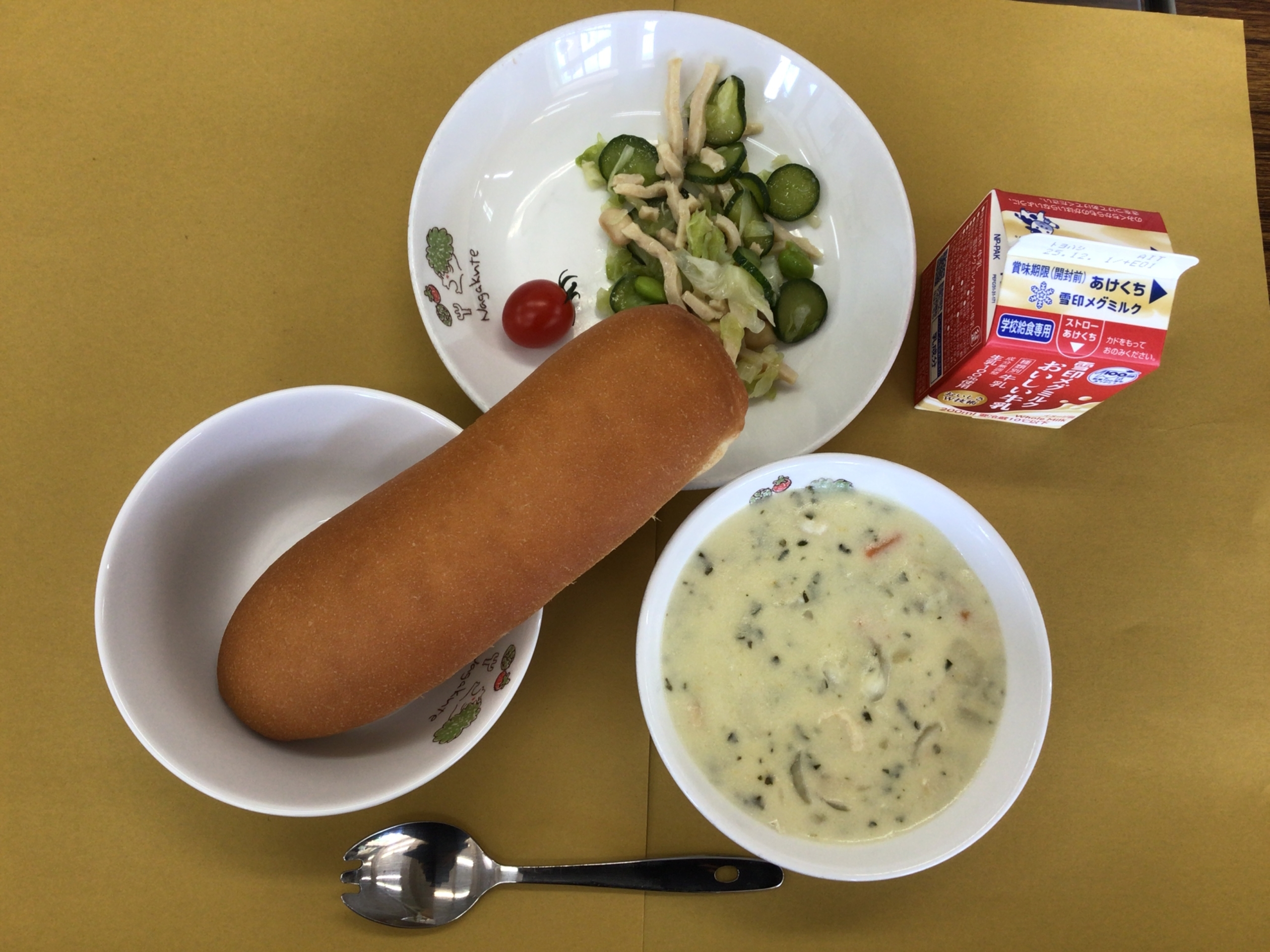 給食での「鶏肉のワーテルゾーイ」は、鶏肉を使って、クリーム煮のように仕上げました。