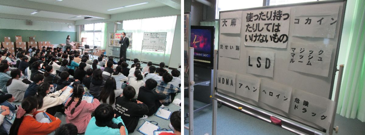 お話の中では、薬物乱用が体や心に及ぼす影響や、違法薬物が社会に広がる仕組みについて詳しく教えていただきました。