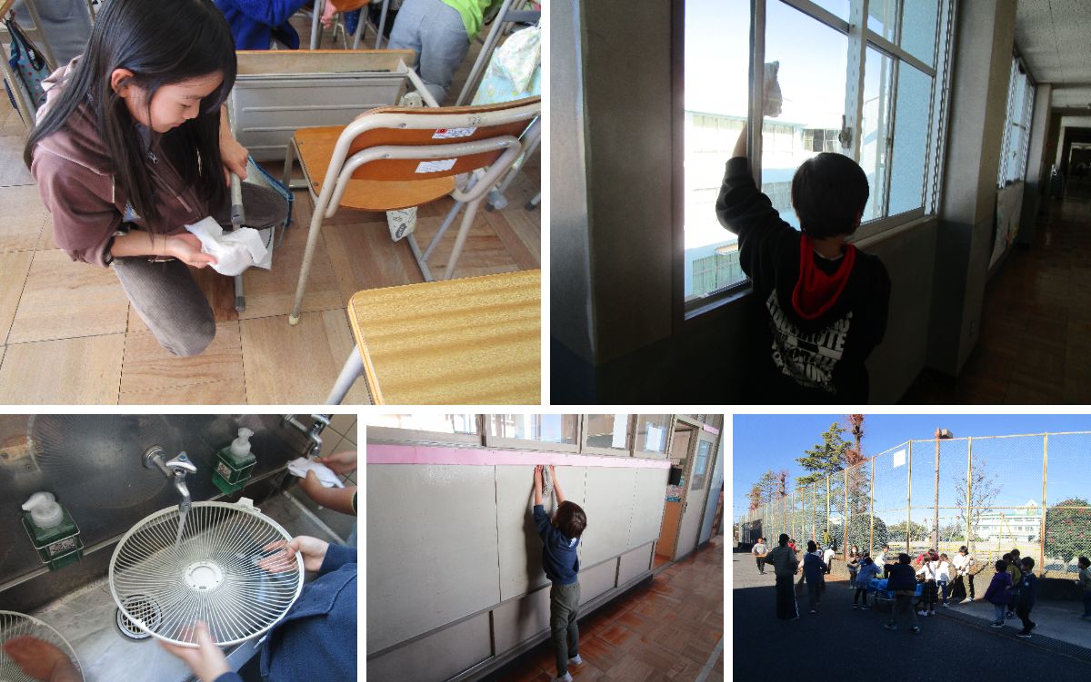 教室や廊下はもちろん、普段はなかなか手が届かない場所まで、子どもたちは協力しながら丁寧に掃除に取り組みました。