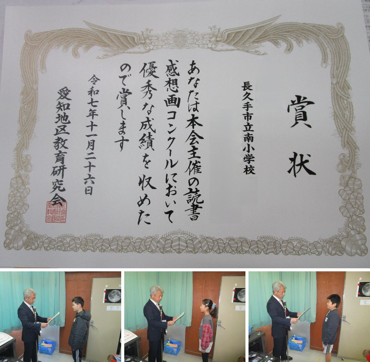 入賞した児童は校長先生から賞状を渡されました。
