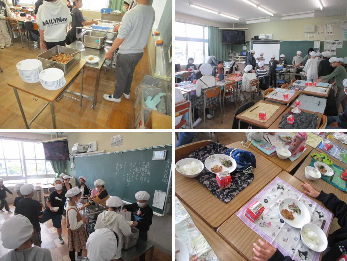 当番の児童を中心に、協力しながら手際よく配膳を行い、久しぶりの給食の時間を心待ちにしている様子が伝わってきました。
