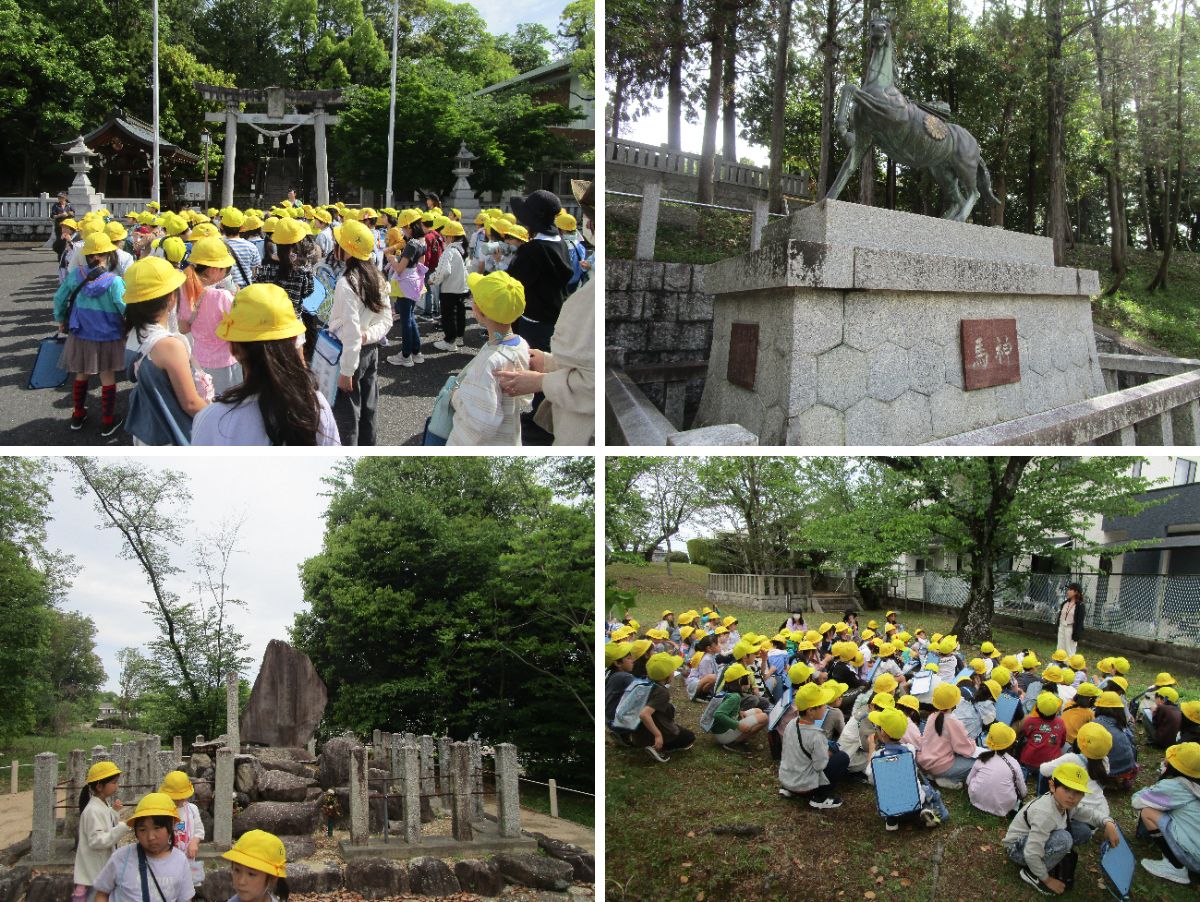 子どもたちは、それぞれの場所に伝わる歴史や由来について説明を聞いたり、実際に見て気付いたことをメモしたりしながら、意欲的に学習に取り組んでいました。
