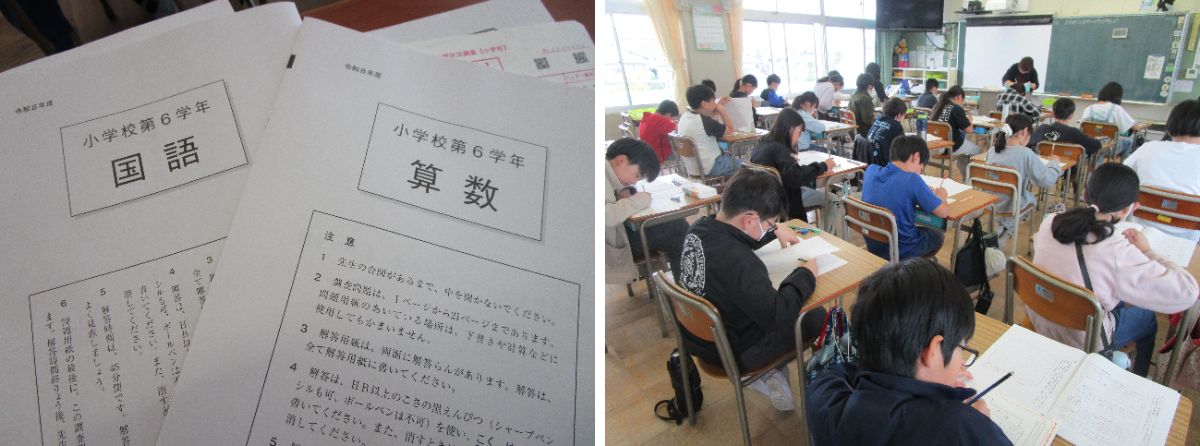 国語や算数などの問題に、一人一人が真剣な表情で取り組む姿が見られ、これまでの学習の成果を発揮しようと集中している様子が印象的でした。